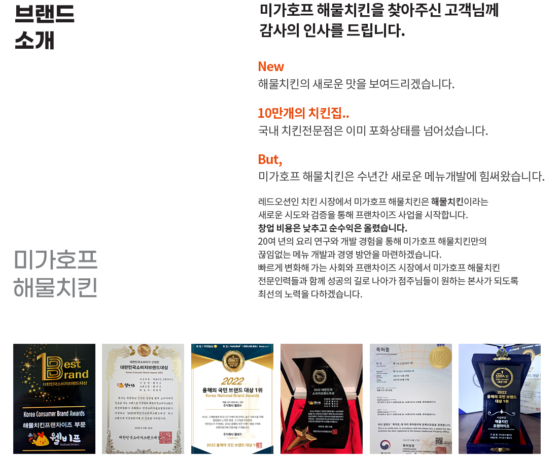 미가호프 해물치킨 프랜차이즈"웰비프"가맹점 모집합니다.창업비용